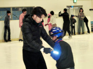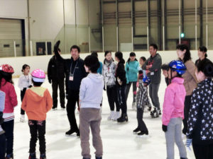 過去最多の参加者数という事で急遽、無良隆志先生、無良千絵先生、宮崎勇人先生、奥岩加奈子先生とプロインストラクター4名に指導協力いただくことになった今回のスケート教室。