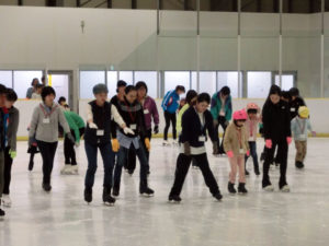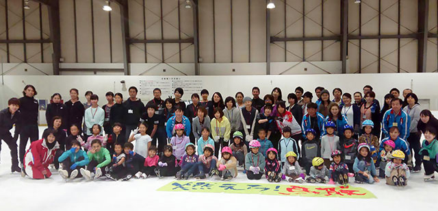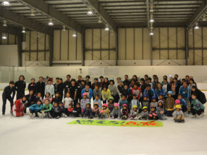 滑るという楽しさを満喫したところで、最後にいつものように参加者全員で集合写真をパチリと撮って、今年のスケート教室も終了です。