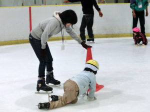 このスケート教室、もともとは「全く滑る事ができない子どもたちが1時間ちょっとで滑る事ができるように」という事を目標にした初心者向けの内容だったのですが、毎年リピート参加してくれる方たちが増える度に、「それじゃ次はこんなのどう?」と毎年ワンステップずつレッスン内容が変わっていくのも、ここ数年の参加者の方の楽しみ方の一つにもなってきている様子。