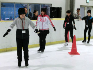 思った以上に上手く滑れるようになった方が多いこともあって、「スピンもしてみようか?」と千絵先生からのご提案で、例年には無い「くるりと周る」という番外編に突入!