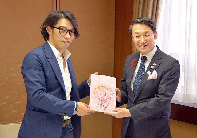 10月5日当日県庁を訪問した際には、エールの言葉が書かれた大きな幕を飾ってお出迎え頂き、鳥取県庁職員の皆様からも盛大な拍手。また夜に開かれた激励会では、平井知事より祝辞の伝言とサプライズのプレゼントを頂くという細やかなお心遣いもいただきました。