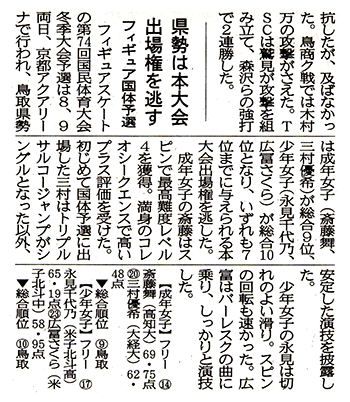 - 【競技結果】鳥取県成年女子 国スポ本戦出場決定:2025年11月29日~11月30日 第80回国民スポーツ大会冬季大会フィギュア競技予選会 / 鳥取県 2位(小嶋4位・永見7位)