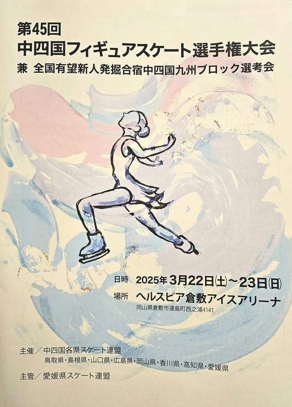 2025年3月22日(土)~3月23日(日)にヘルスピア倉敷アイスアリーナで開催された第45回中四国フィギュアスケート選手権大会に、鳥取県スケート連盟登録の永見千代乃選手(ノートルダム清心女子大学)と小嶋孝夏選手(法政大学)が出場し、永見選手が優勝、小嶋が3位となりました。