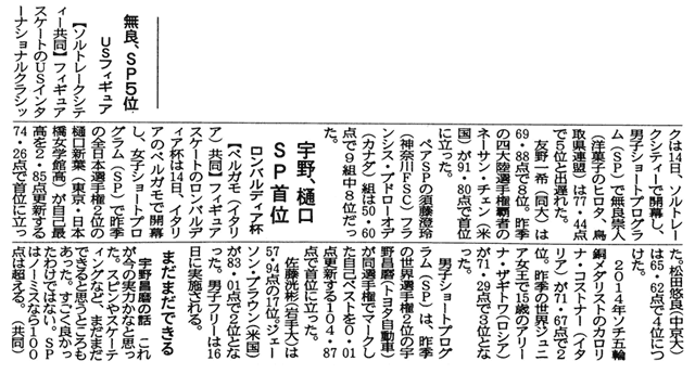 2017年9月15日~16日に、フィギュアスケートのUSインターナショナルクラシックが、米国・ソルトレークシティーで開催され、日本からは鳥取県スケート連盟所属の無良崇人選手(洋菓子のヒロタ)が友野一希選手とともに出場。
