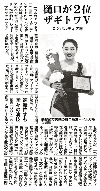 - 【メディア情報】小嶋孝夏 無料会員記事:日刊スポーツ・プレミアム「小嶋孝夏の特別なSP 山隈太一朗が振り付けに込めた願い」